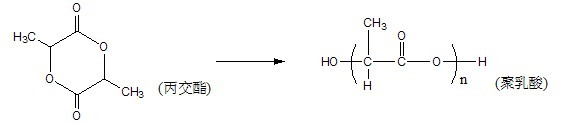 (2)丙交酯開環(huán)聚合獲得聚丙交酯,即聚乳酸: